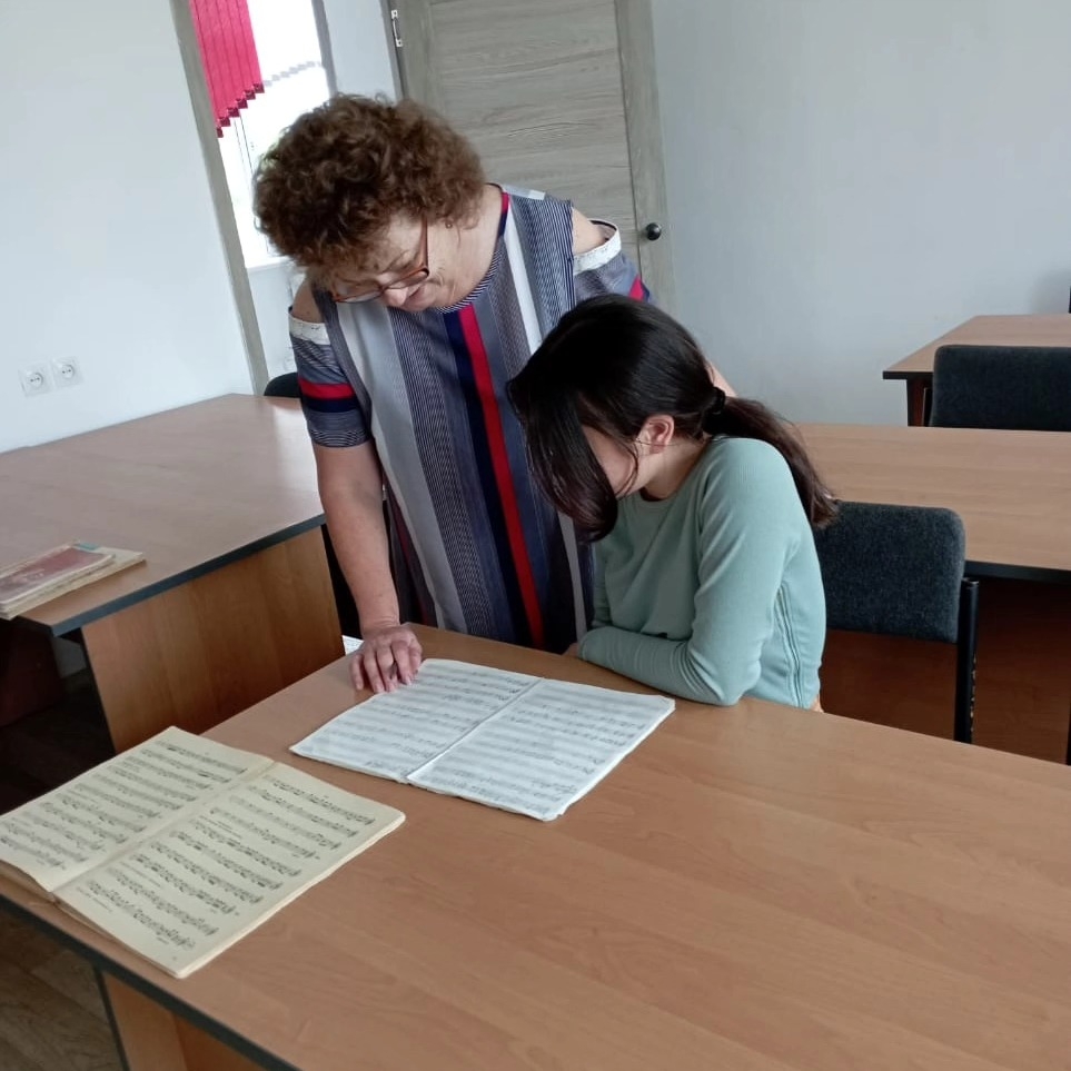 Преподаватель Власова И.В. проводит занятие по сольфеджио с Нурланкызы Е. (класс скрипки)